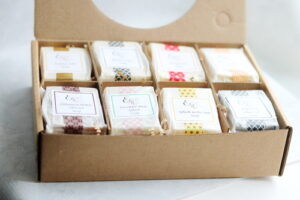 This sampler set includes 8 sample size soaps in my best selling scents. The gift set comes as pictured, tied with a ribbon. All of my soaps are natural and scented only with essential oils. Each soap weighs approximately 1.5 ounces. The following soaps are included: