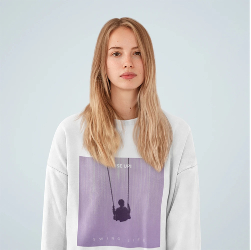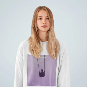 Womens purple logo comfy soft sweatshirt has a loose fit for a comfortable feel. The collar is ribbed knit, so it retains its shape even after washing.